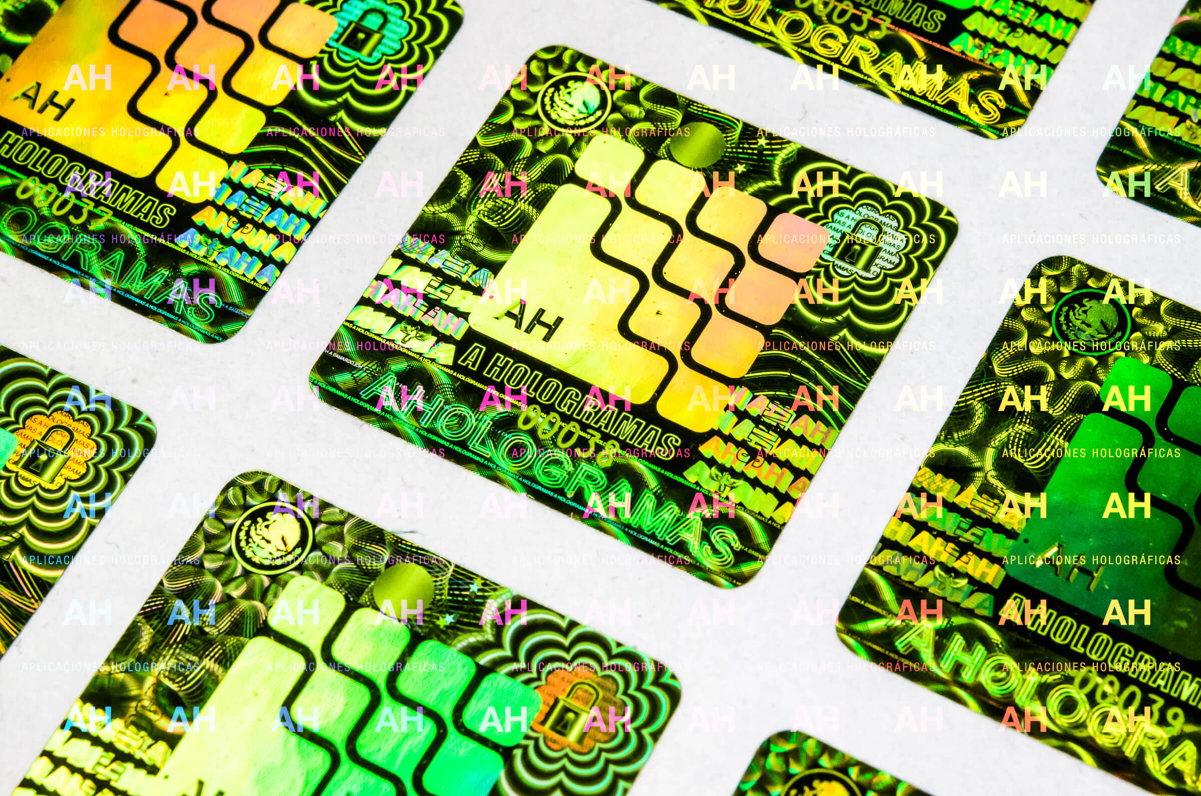 AH, Aplicaciones Holográficas, ha garantizado por más de 17 años la seguridad con etiquetas holográficas tanto Personalizadas como Genéricas, dando un valor agregado con Folios Inkjet, Desmetalizados y con nueva gama de Películas de Colores.